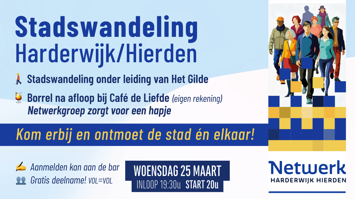 25 maart gratis stadswandeling met Netwerkgroep Harderwijk Hierden. Heb jij je al aangemeld? Er kunnen maximaal 50 deelnemers mee. Wil je mee? Stuur dan een berichtje aan José Maas: jose.maas@hccnet.nl